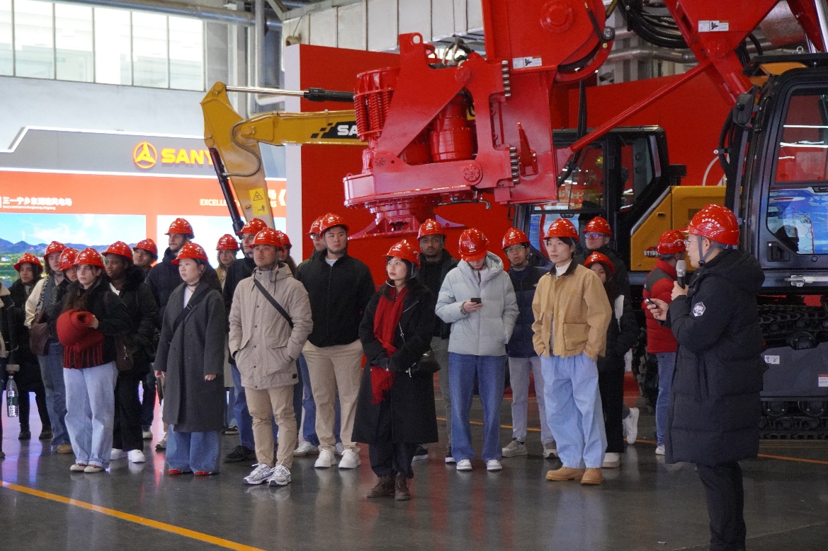 2025年11月28日下午,yl88858永利集团师生一行前往三一集团北京南口产业园进行参观交流。近30位来自德国、法国、墨西哥、俄罗斯、巴西、泰国等十余个国家的职工,在专业讲解员的带领下,开启了一场以“中国新能源智造”为主题的深度参访活动。