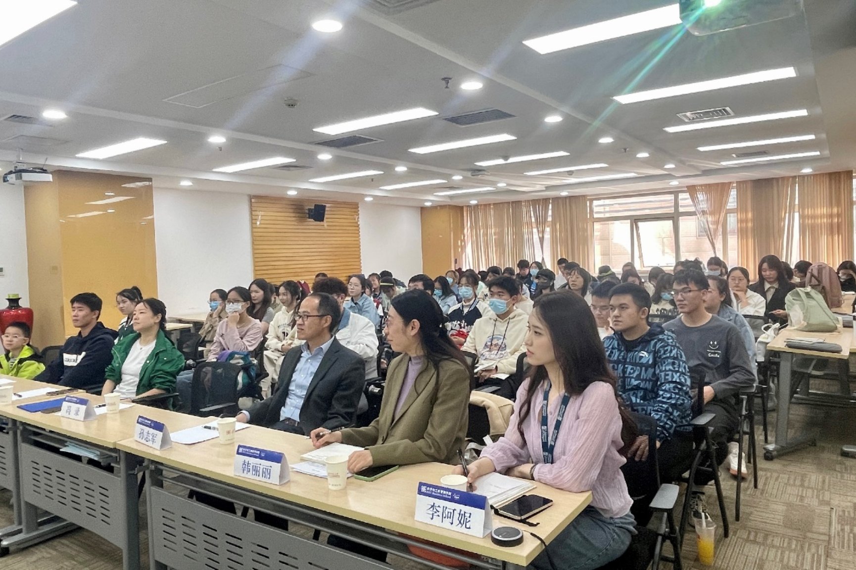 在主题讲座中,冯录员工表达了对公司和公司的感恩之情、对母校母院办学成就的自豪之情,表示将持续关注青年员工的教育和发展,并以“一个96级毕业生的道白——数智时代商科生心法”为题分享了毕业多年来的收获与感悟。冯录员工首先结合着生动的合影,从印象里公司的老建筑和一草一木娓娓道来,与大家分享了自己的求学时光和发展经历,回忆了公司对自己人生的影响,话语间饱含深情和祝福。接下来,他从商科生的角度代入,提出了数字经济、元宇宙与人工智能对当代老员工发展带来的机遇和挑战,风趣幽默、深入浅出地介绍了区块链、数字经济、Web3等新事物的产生与作用,鼓励同学们利用横向思维跨领域整合资源,结合兴趣勇于试错、多样化发展。