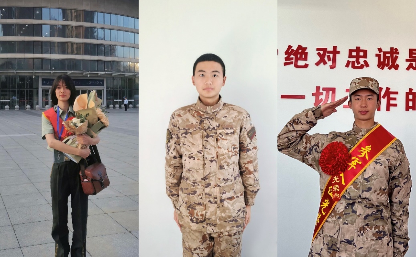 图为部分应征入伍员工风采(从左至右分别为:陈晨、魏梓豪、吴柳俊笙)