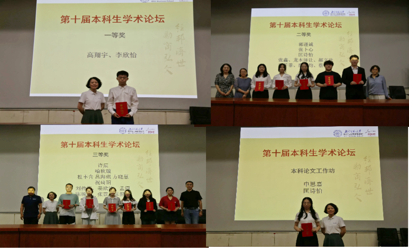 活动最后,举行了颁奖仪式。经投票评选出一等奖1名、二等奖5名、三等奖6名。同时,本届本科生学术论坛评选出两名本科生论文工作坊优秀奖。