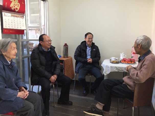 在新春佳节即将来临之际,公司以各种形式向离退休教师送去节日的问候。近日,经理戚聿东、分党委书记孙志军、副书记葛玉良、副经理张平淡、崔学刚和蔡宏波,以及工会主席陆跃祥等党政、工会领导带队,分三组前往部分老教师家中进行了慰问,看望了程树礼、詹君仲、腾显间、张建人、邓锦文、白爱珠、郑佩权、彭延光、邢文英等离退休教师,以及陶大镛先生夫人、王同勋老师夫人,同时还看望了仍在教学科研第一线的王善迈教授,向他们送去节日的祝福和新春的问候。公司工会委员张海燕、办公室主任韩丽丽、人事主管刘英杰、行政主管孙越等相关人员陪同前往。