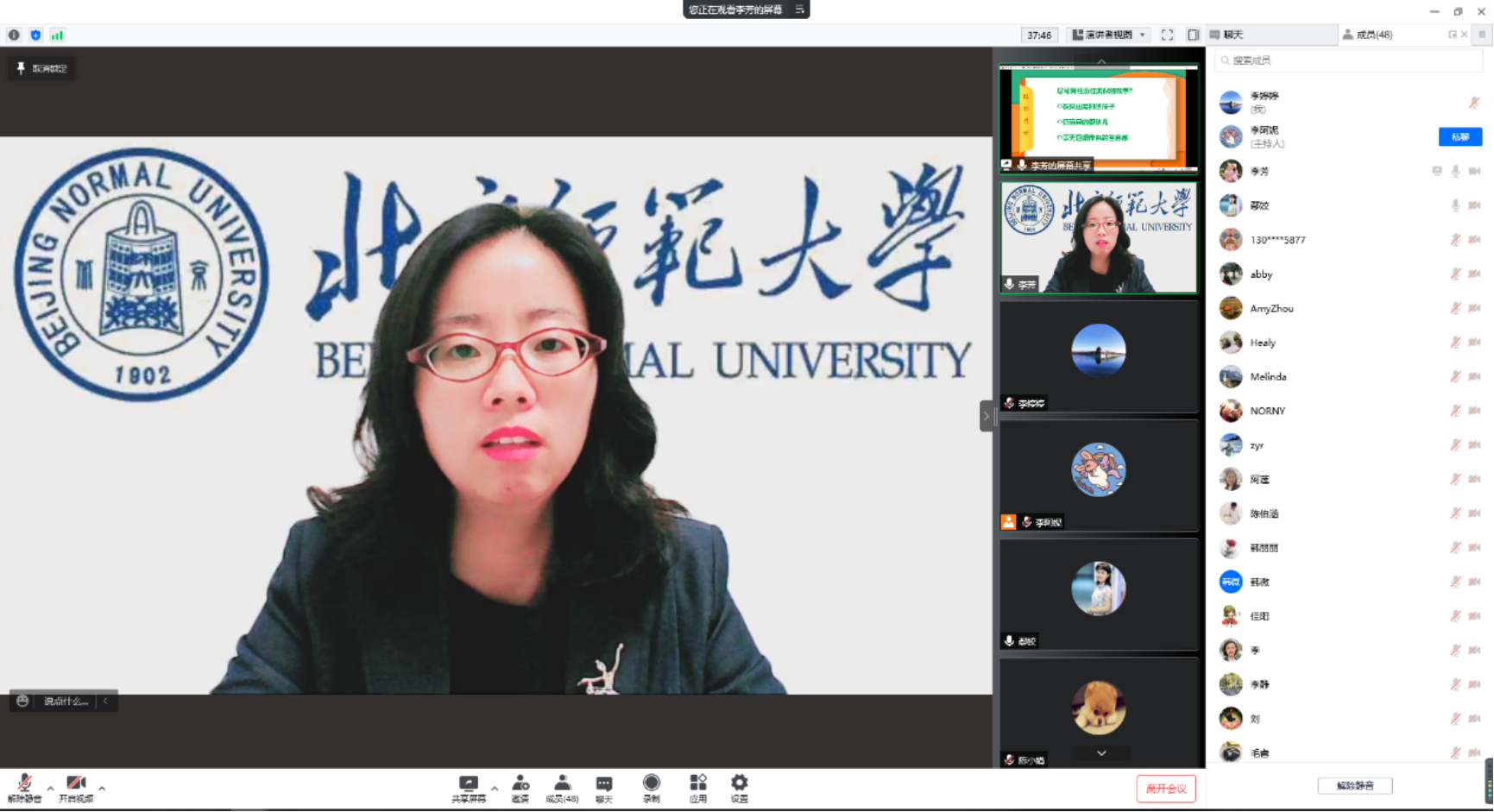在交流与互动环节,多位老师就隔代教育、育儿焦虑、亲子沟通等家庭教育常见问题进行了咨询,李芳老师一一给出了建议和指导。互动结束,李芳老师深情地表示自己在北师大度过了本、硕、博三个重要阶段,母校永远是自己在北京的另一个“家”,同时向永利集团120周年校庆献上了自己真切的祝福。