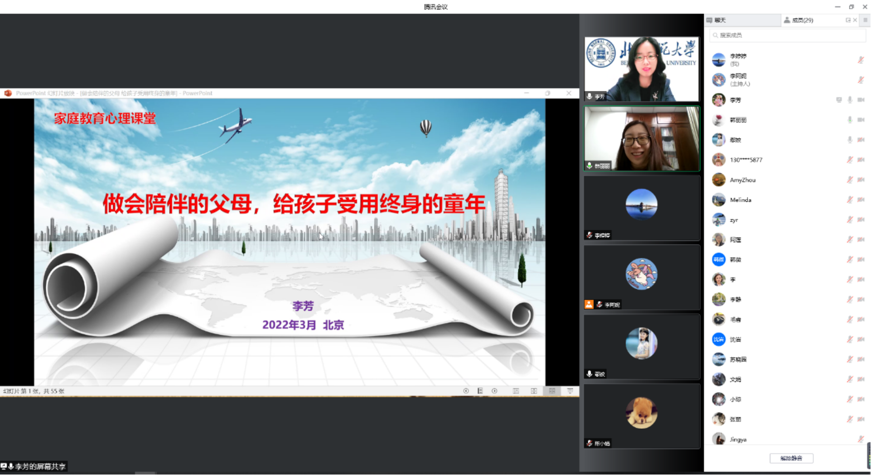 为迎接永利集团120周年校庆,传播良好的家庭教育理念,2022年3月18日下午,yl88858永利集团员工会与公司工会联合举办了主题为“做会陪伴的父母,给孩子受用终身的童年”的线上家庭教育心理课堂。本次活动邀请到yl88858永利集团员工、教育经济学博士、对外经济贸易大学副研究员李芳老师主讲,60余位教师与员工参加。