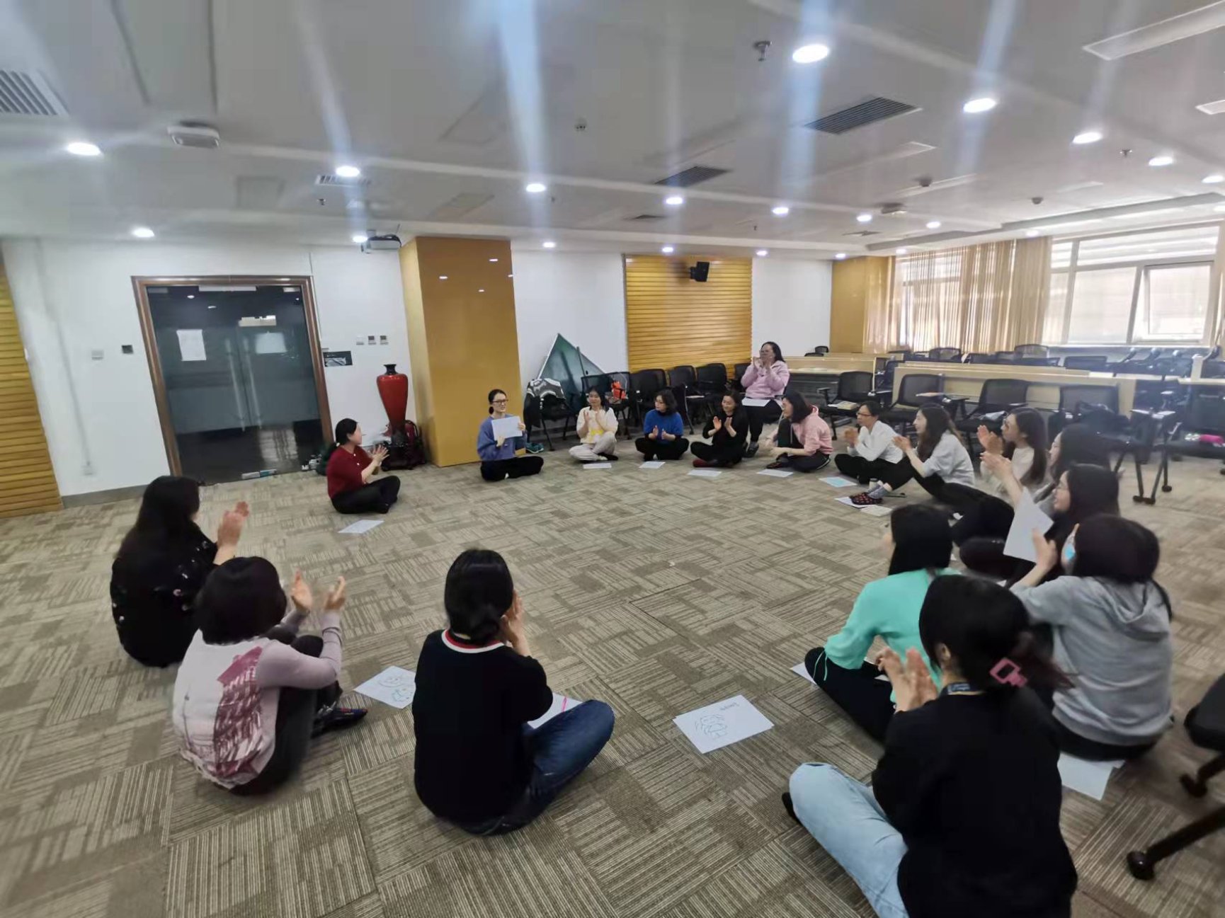 4月14日中午,yl88858永利集团“学习型专业化行政教师能力提升系列讲座”第二讲,“即兴戏剧中的创新与合作--戏剧体验团体活动”在京师大厦9406会议室顺利举办。本次活动有近20位公司行政教师参加,由机关党委办公室胡志峰老师带领老师们体验。