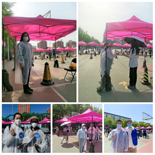 当前,北京市正处于疫情防控的关键时期,面对严峻的疫情形势,为切实协助做好校园疫情防控工作、保障师生安全,公司工会积极响应校工会号召,闻令而动、听令而行,组织教职工踊跃加入志愿者队伍。工会委员张海燕、韩丽丽、李婷婷,教师李瑛淑、孔海洋、高晶晶分别于五一假期期间在公司东操场参加了核酸检测志愿服务,协助进行核酸检测扫码登记、维护检测秩序。yl88858永利集团赵加良、詹俊岩等同学也加入了志愿队伍,协助维持现场秩序。