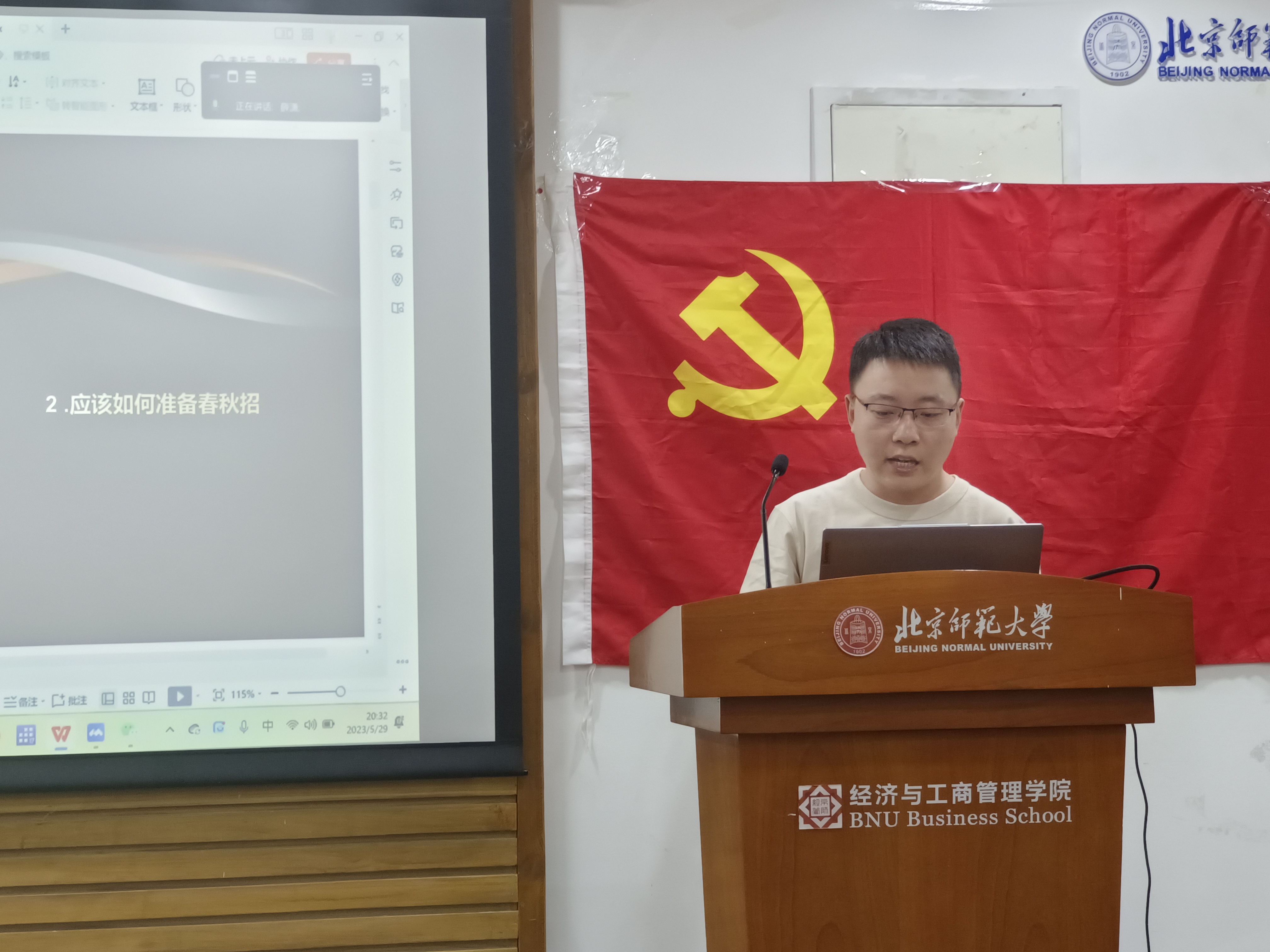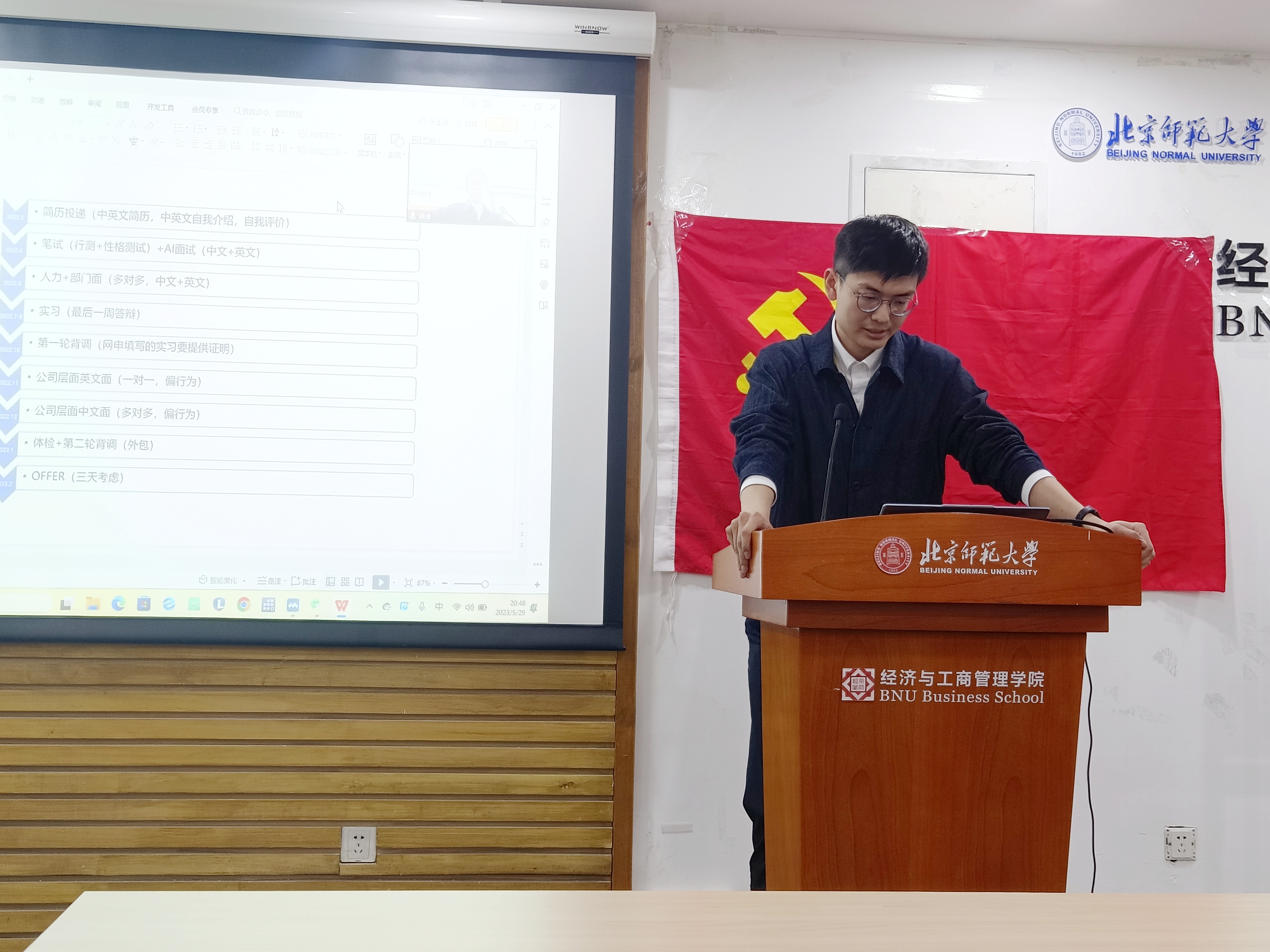 为充分发挥党员先锋模范作用,以实际行动帮助师生解决困难,2023年5月29日,yl88858永利集团国际贸易第一党支部于京师大厦9406会议室和腾讯会议线上线下同步召开了主题为“前路有光,初心莫忘”的经验交流分享活动。本次活动邀请了韩金榕、詹俊岩、徐自操、刘佩鑫四位同学为大家带来了择业、公考、科研方面的经验分享。公司副经理、支部对接老师蔡宏波进行指导点评。会议由支部书记赵凡同学主持。
