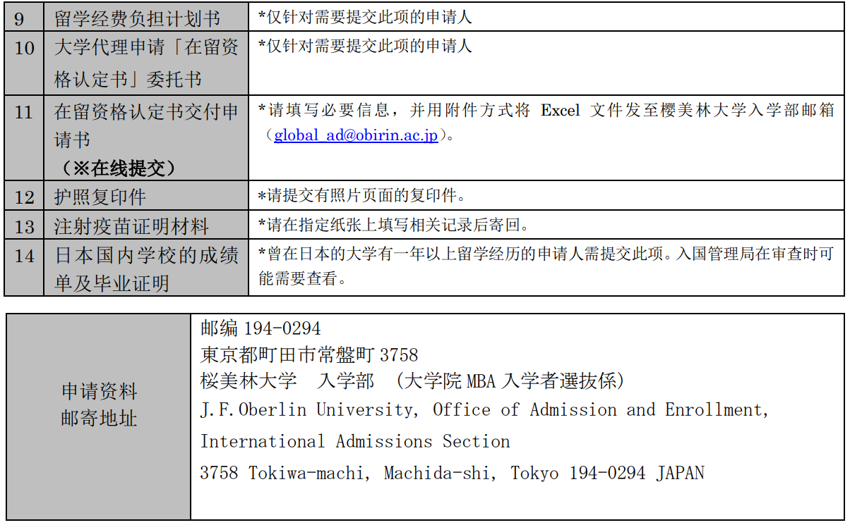 请确保资料在提交截止日期前邮寄到樱美林大学入学部。