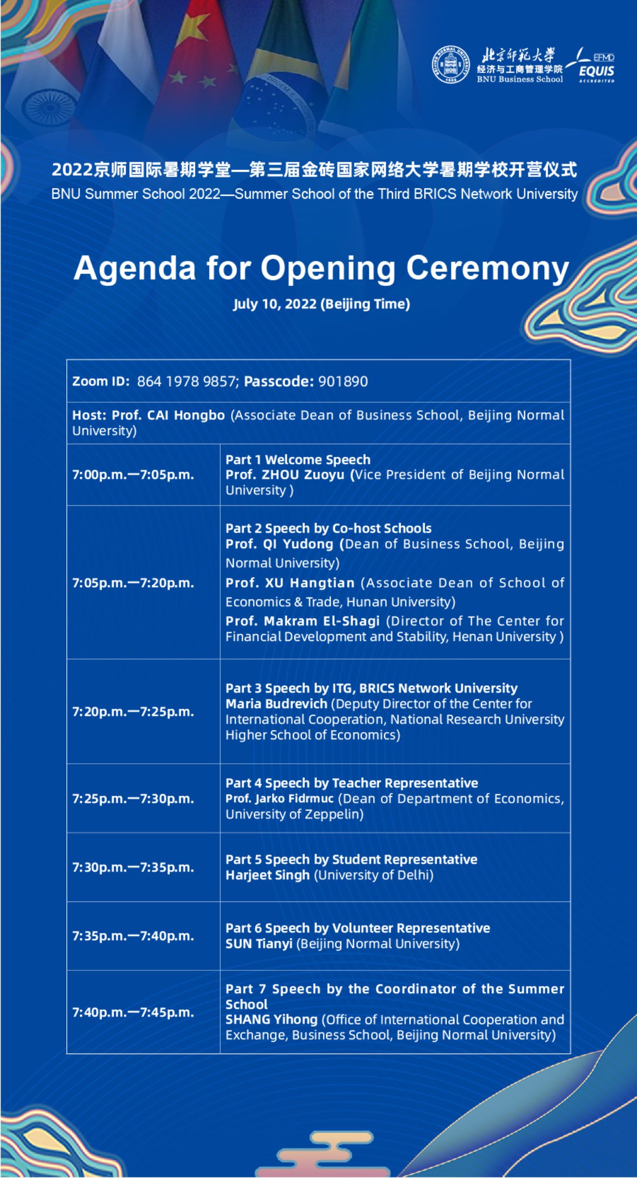 2022年京师国际暑期学堂—第三届金砖国家网络大学经济学暑期公司开营仪式通知