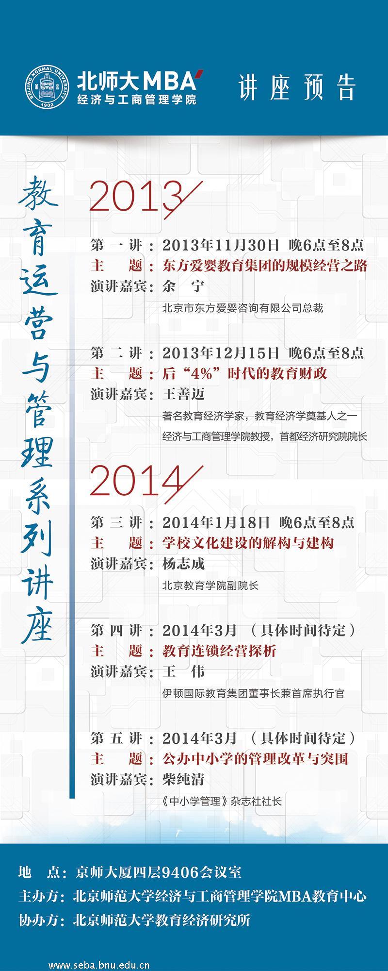 2013北师大MBA教育运营与管理系列讲座预告