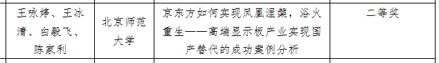 近日,第二届国际商务专业学位研究生高水平对外开放背景下企业国际化与创新发展案例竞赛经过组委会以及相关专家的评选,公司2022级国际商务专业硕士王咏婷、王冰清、白毅飞、陈家利同学提交的案例《京东方如何实现凤凰涅槃,浴火重生——高端显示板产业实现国产替代的成功案例分析》(指导老师蓝裕平)获评研究型案例二等奖。